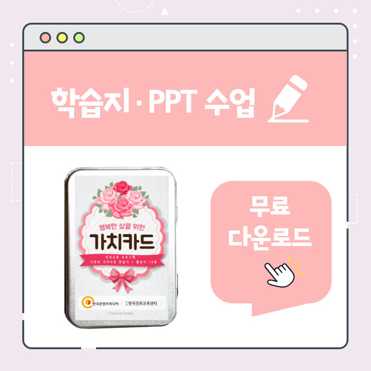 [출처] 가치카드 수업용 자료 (진로교사를 위한 [직업카드] 수업방법) | 작성자 한국콘텐츠미디어