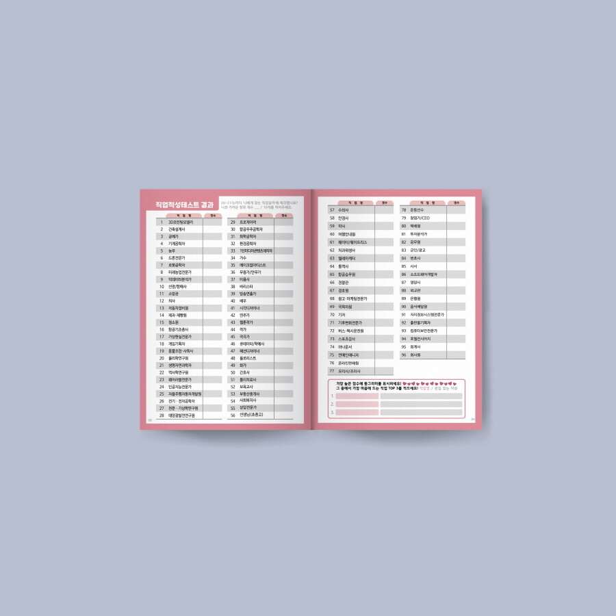 96개 직업에 대한 점수를 결과표에 적으면서 가장 높은 점수를 받은 직업 3개를 고를 수 있습니다.