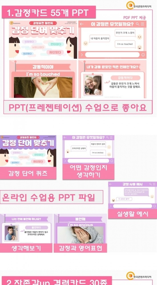 1)도서명: 공감능력 감정카드 CD롬 - 온라인 원격 수업 PPT 자료 (감정단어 55가지, 감정표현 퀴즈)